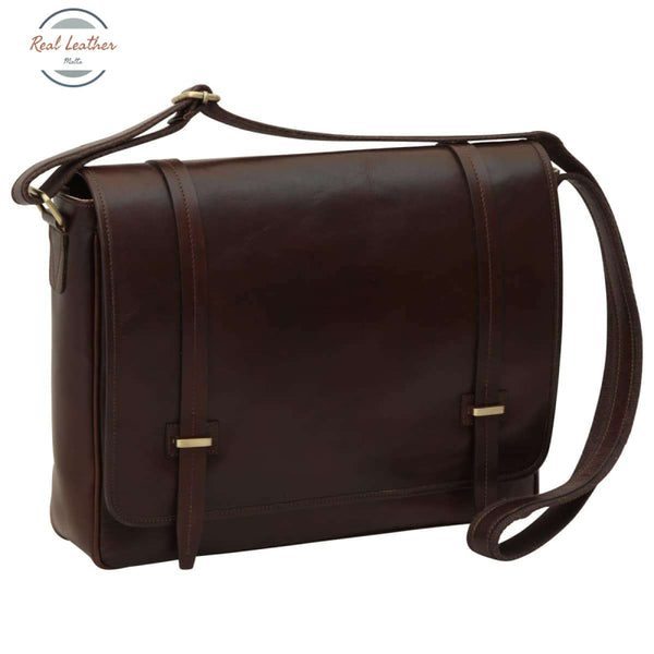 100% full-grain calfskin leather messenger with: -