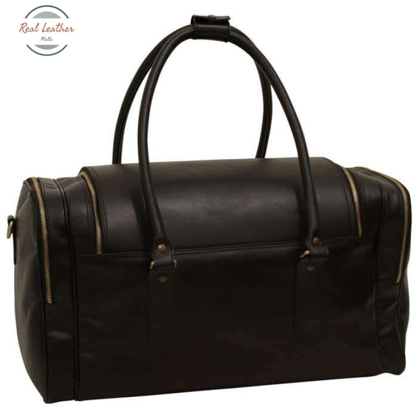 Full grain Italian leather travel bag includes: - - - Synthetic interior lining - - Metal zip - - Interior zip pocket - - Two exterior zip pockets - - Easy, access U-shaped opening - - Antique brass finished footing - - Removable and adjustable leather shoulder strap - - Travel with all the luxury and distinction of first class—no matter where you go. This travel bag exceeds all standards with its dark Italian leather, timeless design and antique brass hardware. - - Size: cm 56 x 25 x 27 - - Weight: kg 3