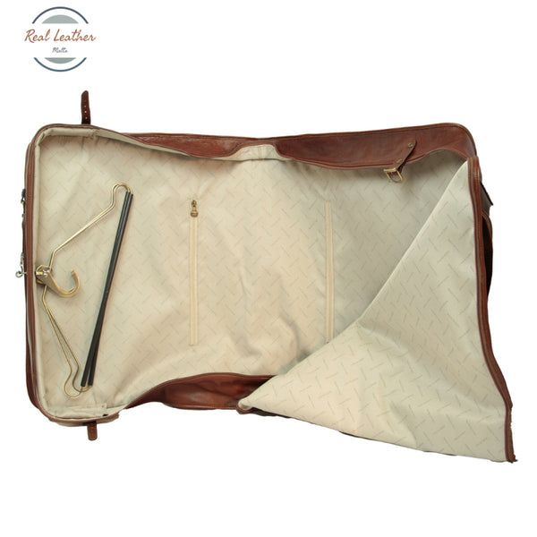 Full grain leather and canvas garment-bag , synthetic lined, two large, front and rear , exterior zip compartments, three internal zip pockets, leather shoulder strap with shoulder pad; hanging-hook and two coat-hangers. - Size : 96 x 57x 11 cm Weight kg 3,2