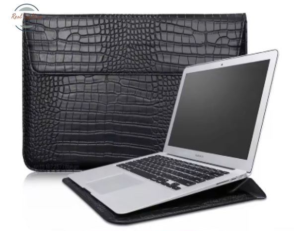 Genuine Crocodile Leather Flip Case Bag Laptop Sleeve for MacBook Air and Pro 13 14 15 16 Inch Black