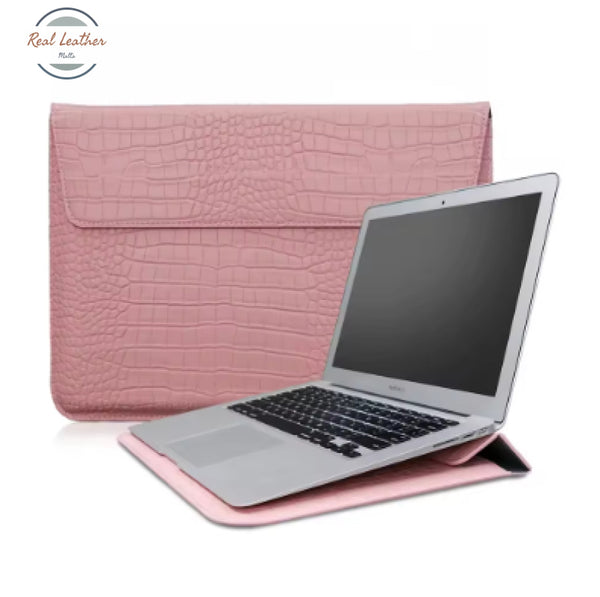 Genuine Crocodile Leather Flip Case Bag Laptop Sleeve for MacBook Air and Pro 13 14 15 16 Inch Pink